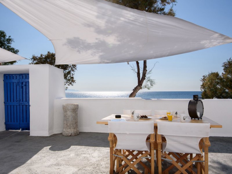 Its highlight is the spacious patio, a perfect spot to admire the breathtaking sunrise or unwind with a glass of wine overlooking the Aeagean Sea.